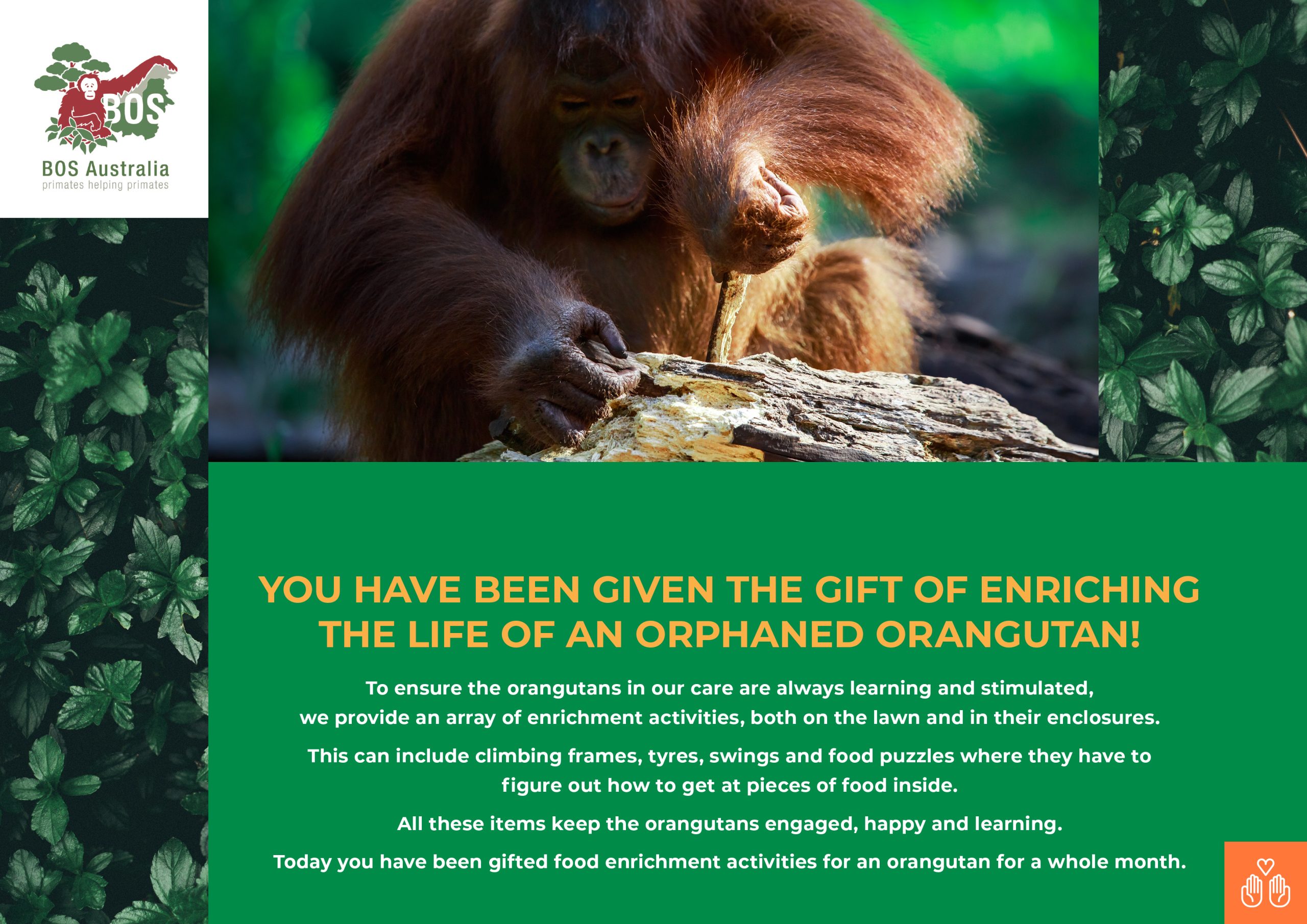 You can give the gift of food enrichment for one month to an orangutan today for just $50
