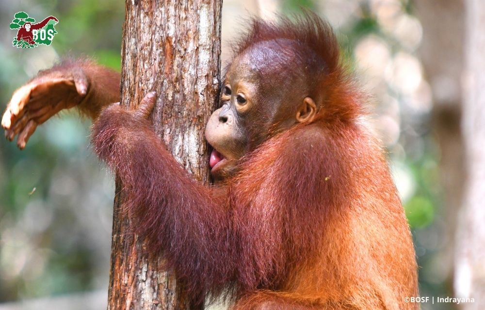 Together with his friends, Monyo has been actively roaming the Forest School area. He doesn’t wander off very far but will now bravely climb tall trees. The surrogate mothers noticed Monyo being the most curious one in the group, especially when tasting newly discovered food sources.